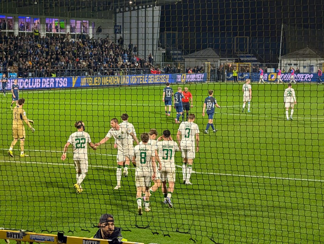Nach über einem Jahr Verletzungspause wurde Morris Schröter in der 67.Minute für Tim Danhof eingewechselt. Danach verlegte sich 1860 wieder darauf, die Räume für Hoffenheim II eng zu machen und abzuwarten. Mit zehn Mann konnte Hoffenheim aber keine gute Torgelegenheiten mehr erspielen. Sechzig lauerte auf Konter und Steinkötter gelang das vermeintliche 1:3, das aber wegen Abseits wieder kassiert wurde (76. Minute). In der letzten Viertelstunde ließ 1860 gegen das dezimierte Hoffenheim II bis zur Nachspielzeit nichts mehr anbrennen. In dieser musste Dähne noch zwei Mal beherzt eingreifen, um das 1:2 über die Zeit zu bringen. Am Ende feiern die Löwen einen Arbeitssieg gegen zehn Hoffenheimer. Damit verkürzt der TSV den Abstand auf Rang 3 zumindest für eine Nacht auf vier Punkte. Je nachdem wie die anderen Teams morgen spielen, ist 1860 möglicherweise wieder mitten drin im Kampf um den Aufstieg.