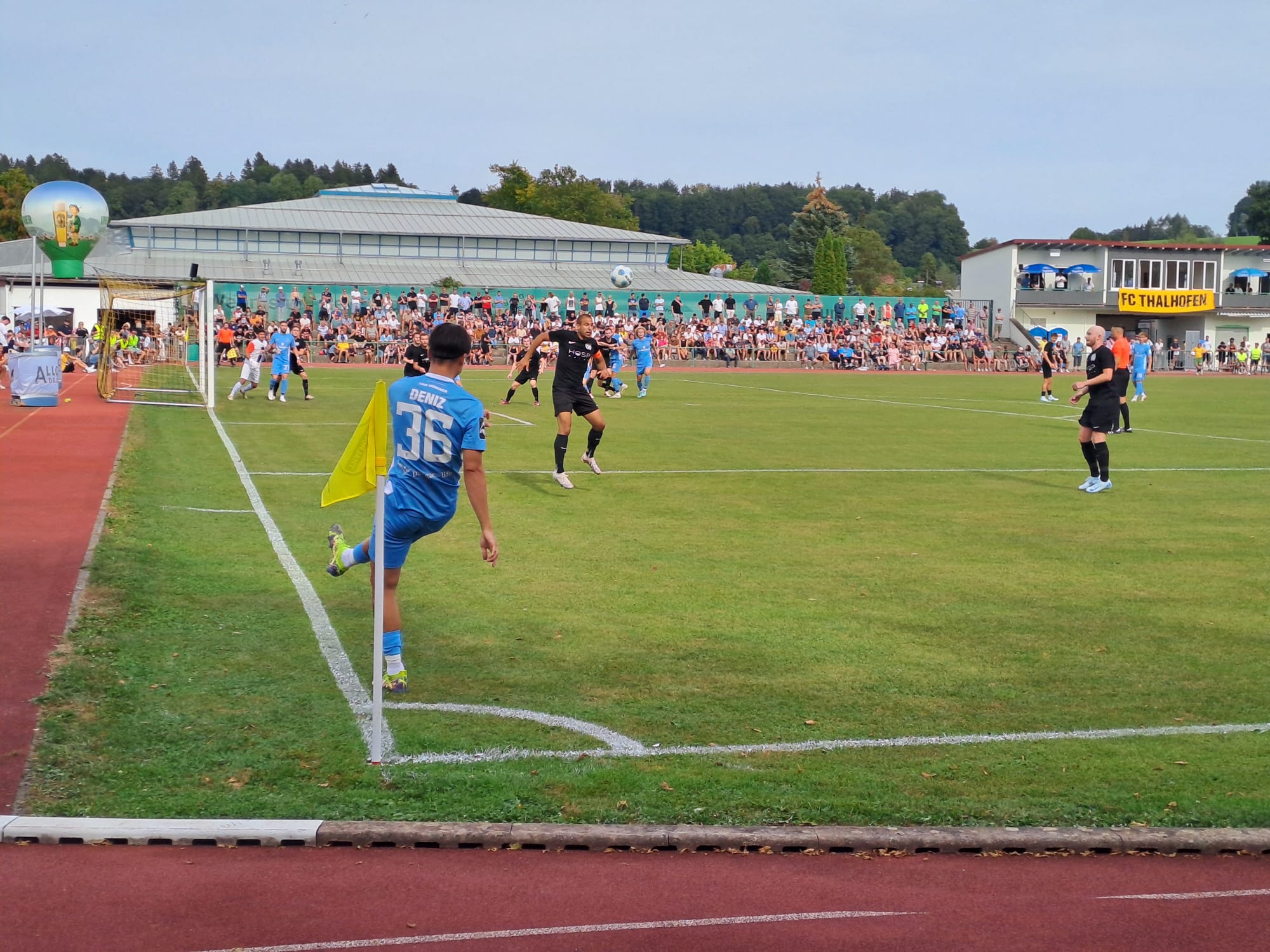Die ersten beiden Treffer fielen per Kopf. Nach zehn Minuten war Raphael Ott zum 0:1 erfolgreich, nach einer Ecke legte Max Reinthaler das 0:2 nach. Nach dem 0:3 von Tunay Deniz waren wieder die ersten beiden Torschützen an der Reihe. Wiederum Ott und Reinthaler erzielten in dieser Reihenfolge die Tore zum 0:5-Pausenstand. Für frenetischen Jubel sorgte er erste Torschuss von Thalhofen nach einer halben Stunde, auch wenn er das Gehäuse weit verfehlte.