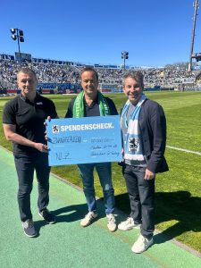 Die Unternehmer für Sechzig organisierten im März einen großen Kabarettabend im Hofbräukeller zu Gunsten des NLZ. Zusammengekommen sind bei der Veranstaltung mit Michael Altinger, Claudia Pichler und dem Wiggerl insgesamt 20.000 €. In der Halbzeit des Spiels gegen Ulm fand nun die feierliche Übergabe des entsprechend großen Spendenschecks statt. Überreicht wurde der Scheck vom 1. Vorstand der Unternehmer, Peter Lechner, an Präsident Gernot Mang und GF Manfred Paula. Das Geld soll vor Allem dazu dienen, den Fahrdienst sicherzustellen und die Infrastruktur am NLZ weiter zu modernisieren.