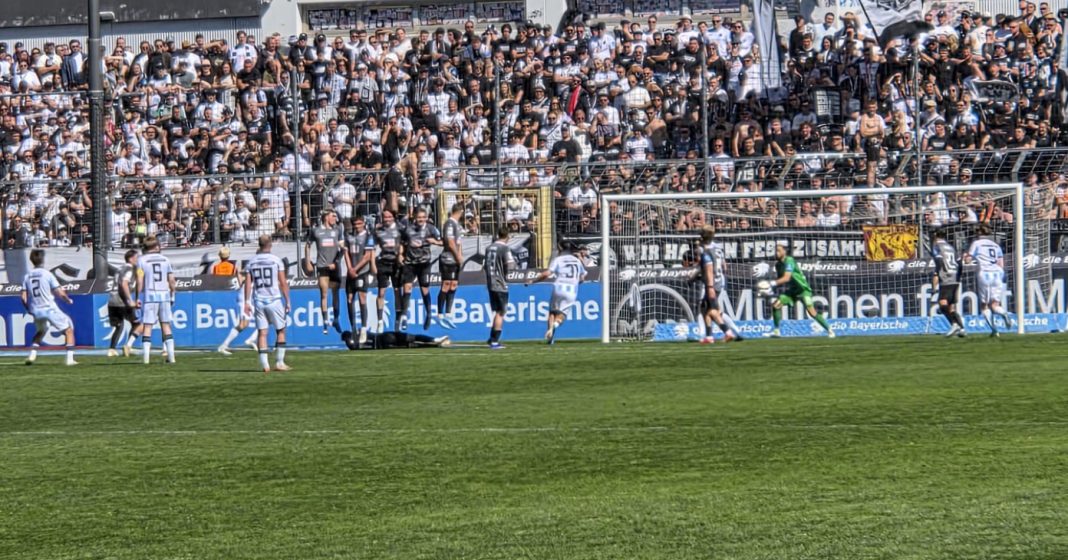 Nach dem Seitenwechsel kontrollierten die Spatzen zunächst deutlich das Geschehen und schnürten 1860 in der eigenen Hälfte ein. Im Gegensatz zu ersten Halbzeit sprangen dabei jedoch deutlich weniger Tormöglichkeiten dabei heraus. Die Löwen agierten aus der Defensive, konnten jedoch kaum Konter setzen. Erst in der 74. Minute schien es gefährlich zu werden, doch Steinkötter wurde auf dem Weg zum Tor zu Fall gebracht. Tim Danhof nahm sich der Sache an und versenkte den Freistoß sehenswert im Tor der Gäste (siehe Titelbild).
