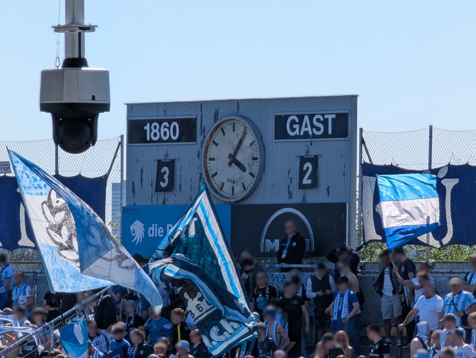 Das heutige Heimspiel war für mich besonders, da ich seit der Rückkehr 2017 im Block L in der Stehhalle meine Dauerkarte habe, aber heute wollte ich mal wieder ein Spiel in der Kurve erleben. Wir sind schon um kurz nach 13 Uhr rein gegangen, am Eingang musste ich meine Zahnpasta (die noch versehentlich in meiner Tasche war) abgeben, hat uns viele Lacher beschert. Dann ganz hoch in F1 bei schönstem Wetter und netten Gesprächen die Zeit bis zum Anpfiff genossen. Dann das Spiel, wahnsinnig schlecht und langweilig bis zur 70. Minute dann ein paar Tore, witzigerweise habe ich die ersten beiden Tore vorhergesagt und dann noch ein paar Gegentore, naja ein typisches Sechzgerspiel halt, aber für mich ein wunderschöner Fußballtag, hat sich fast wie bei einem Auswärtsspiel angefühlt, da ich ja so lange nicht in der Kurve war.