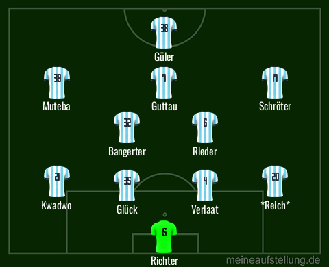 Sollte mit Güler nichts vorgefallen sein, würde ich ihn vielleicht auch mal in die Spitze stellen. In dem Fall dann je eine Halbzeit Ouro-Tagba und Muteba auf links.