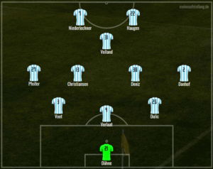 Max Christiansen rutscht bei Christian in die erste Elf und ersetzt Thore Jacobsen im defensiven Mittelfeld. Die beiden Außenspieler Danhof und Pfeifer bekommen eine neue Chance und dürfen beweisen, dass sie mehr draufhaben, als sie in Essen gezeigt haben.