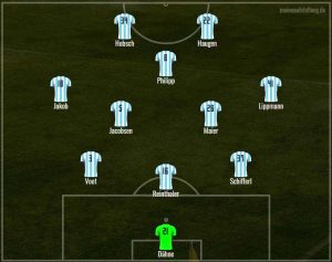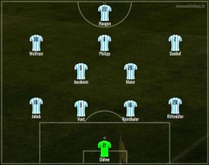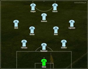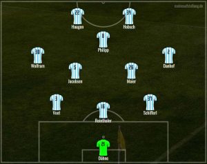 Auch Stefan setzt auf 4-2-3-1 und opfert Patrick Hobsch in der Sturmspitze. Maximilian Wolfram soll über links Dampf machen, sein Pendant auf rechts ist Tim Danhof. David Philipp ersetzt Kevin Volland als Spielmacher und kann hoffentlich endlich mal sein Potenzial von Beginn an ausschöpfen.