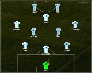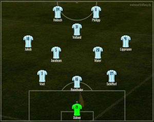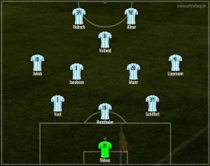 Vom System her sehe ich uns – wie auch schon gegen Essen – mit einer echten Spitze und zwei Offensiven dahinter agieren. Eine Option wäre, Dordan im defensiven Mittelfeld zu belassen und Jacobsen anstelle von Philipp im offensiven Mittelfeld einzusetzen. Die Position hat er (unter Glöckner?) auch schon nach Einwechslungen gespielt.